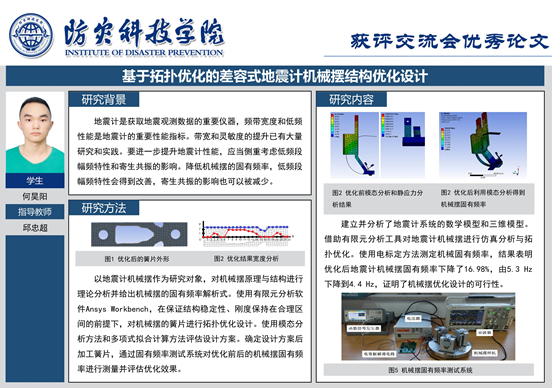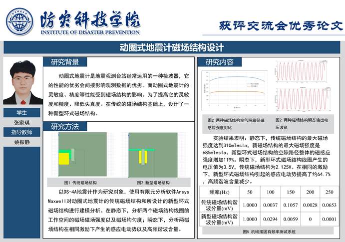 5月23日,本届大会程序委员会以视频方式召开全体会议,会议表决确定了52个分会场答辩专家组推荐的优秀毕业设计(论文)和PPT。张家琪同学的毕业设计论文《动圈式地震计磁场结构设计》和何昊阳同学的毕业设计论文《基于拓扑优化的差容式地震计机械摆结构优化设计》获得与会专家的一致好评,入选优秀毕业设计论文,体现了公司测控专业“立足行业、强化实践、协同创新”的育人理念。