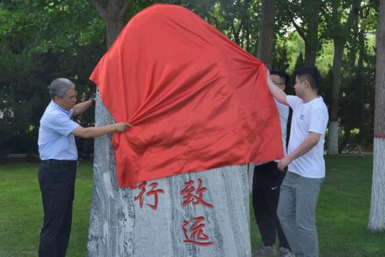任云生与员工代表拱兴乾、穆如旺共同为捐赠的景观石揭幕,并向员工颁发捐赠证书和员工联络员聘书。员工代表拱兴乾发言,他重温了十年前在校学习生活的美好时光、师生相处的浓厚情谊,对母校的培养表示感谢,并表示将一如既往地关注和支持母校的发展建设,为母校的发展做出更多贡献。