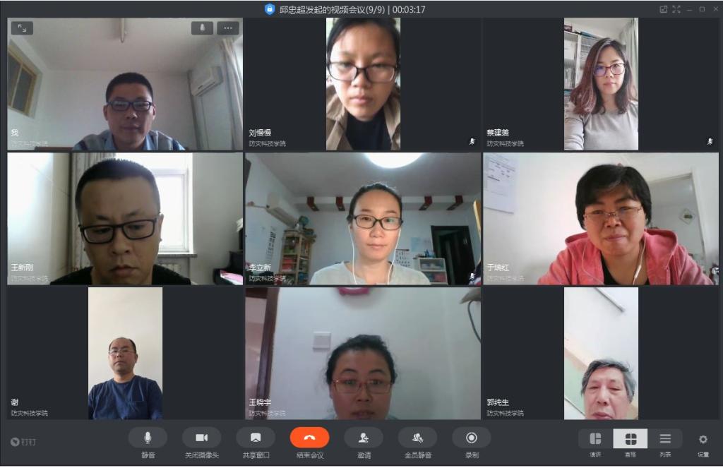 5月7日下午14:00-15:00,电气工程及其自动化教研室教工党支部采用钉钉线上会议开展“阻击疫情 党员先行三问三思”主题党日活动。教研室全体党员及入党积极分子刘慢慢参加活动。