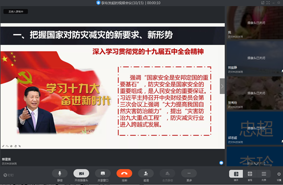 蔡建羡从五个方面做专题分享:1. 我们应通过深入学习贯彻党的十九届五中全会精神,把握国家对防灾减灾的新要求、新形势,习近平总书记强调的“大力提高我国自然灾害防治能力”,提出的“灾害防治九大重点工程”,预示着我国防灾减灾行业进入跨越式发展;2. 我们应把握国家对本科教育的新导向,即“以本为本 四个回归”;3. 我们应把握“大应急、全灾种”的机遇与挑战,主动适应“大应急、全灾种”体制,推动职能转变,整体提升服务保障效能;4. 深悟透公司“十四五”规划,通过学习公司在“十四五”规划中关于“人才培养”“团队建设”等方面的工作,更加明确公司未来五年的规划;5. 找出公司所面临的重要问题,明确学科定位,即立足地震、地质灾害,面向自然灾害和应急管理,作为“灾害链”中的监测支撑部分,重点围绕地震前兆、地震发生时获取数据的仪器研制、预警进行研究。