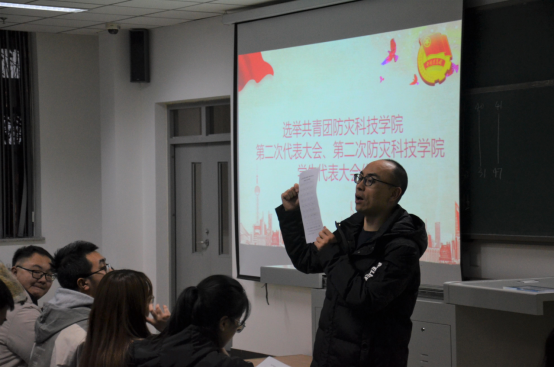 会上,电子科学与控制工程公司党总支副书记、团总支书记阎光耀老师向员工代表发表致辞(图二)。