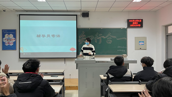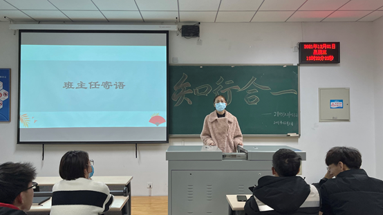 为了深入学习宣传十九届六中全会精神,同时让同学们严肃考风考纪,2021年12月1日19时210531班与210532班在天仪楼502教室,联合召开学习贯彻十九届六中全会精神暨考风考纪宣讲主题班会,马克思主义公司经理李君老师、班主任姜运芳老师、辅导员王立老师出席此次班会。