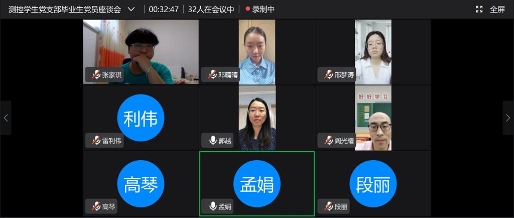 为了进一步关怀和落实毕业生就业工作,提升毕业生爱校荣校及党员身份意识,营造健康、和谐、文明、温馨的毕业离校氛围,2022年6月12日下午,suncitygroup太阳集团测控员工党支部联合测控教师党支部在线上召开了毕业生党员座谈会。会议由测控员工党支部书记郭越老师主持,测控员工党支部2018级毕业生党员、党支部支委、非毕业生党员、测控教研室教师党员以及公司党总支副书记阎光耀老师参加了本次会议。