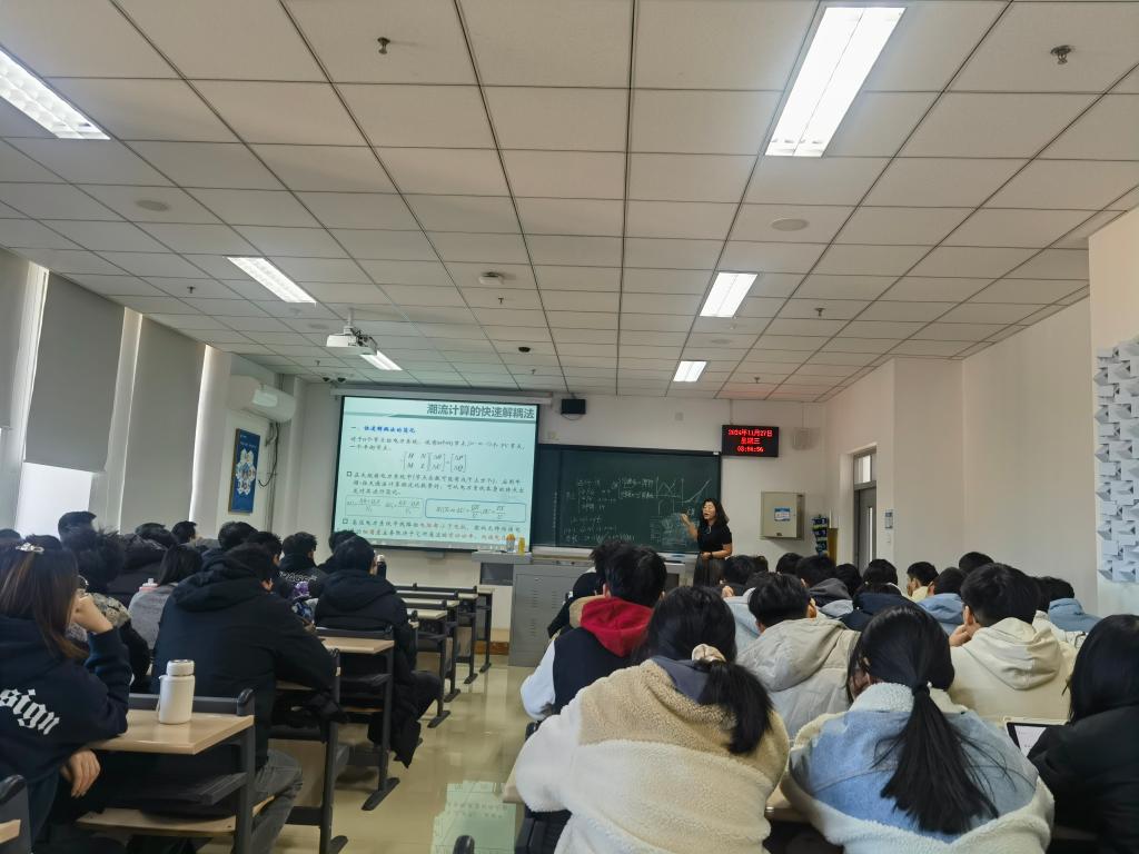 在活动准备阶段,教研室教师们提前安排好时间,准时出现在授课教室,以严谨的态度全程投入听课。他们细致地观察了课堂教学的各个方面,包括教学内容组织、教学方法的应用、课堂氛围的营造以及师生互动情况。王晓宇副教授讲授的是《电力系统分析》中的P-Q潮流算法,她凭借扎实的专业知识和清晰的逻辑,对知识点进行了详尽的讲解。