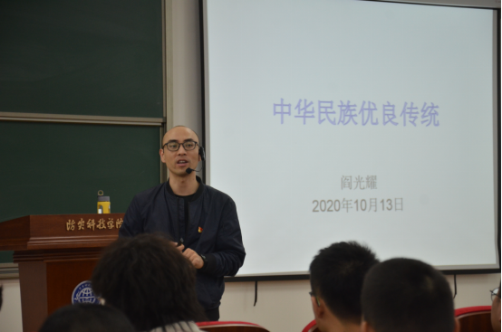 为加强新生的爱国主义教育,增强新生的民族认同感,激励新生继承中华民族优良精神,电子科学与控制工程公司于2020年10月13日晚上7:00,在天仪楼508举办了爱国主义及国家总体安全教育与中华民族优良传统教育讲座。本次讲座由电子科学与控制工程公司党总支副书记、团总支书记阎光耀老师主持,参加本次活动的人员有2020级全体新生。