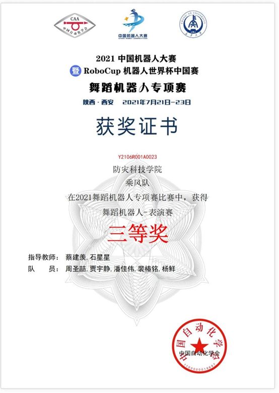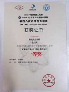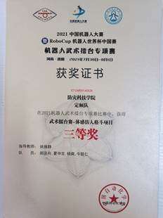 7月30日至8月1日,公司suncitygroup太阳集团员工于“2021中国机器人大赛暨RoboCup机器人世界杯中国赛”中喜获佳绩,其中,北辰队(杨爽、 郝汛舟、雷付路、马文武)获得武术擂台赛-自主仿生机器人散打项目国家级一等奖、定倾队(郝汛舟、夏仲言、杨爽、牛聪仁)获得武术擂台赛-体感仿人格斗项目国家级三等奖;乘风队(周圣喆、贾宇静、潘佳伟、裴椿铭、杨鲜)获得舞蹈机器人-表演项目国家级三等奖。