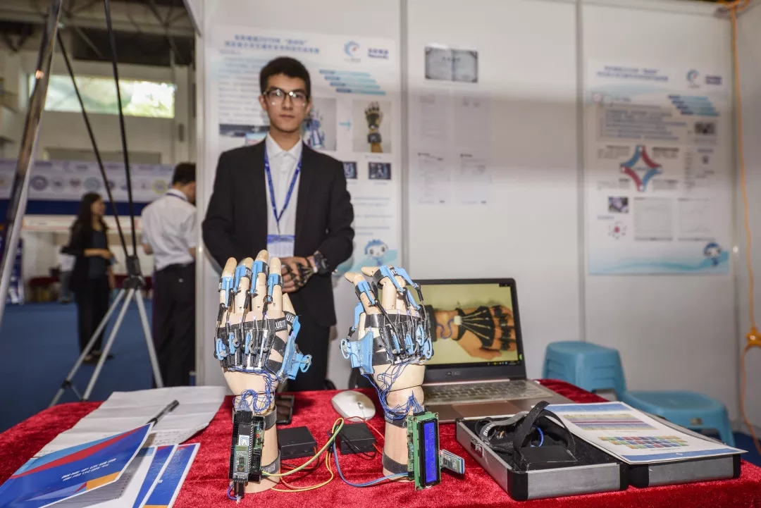 本次竞赛共收到全省70余所高校的2000多件作品参赛。经过初审和复赛的层层选拔,48所高校的246件作品脱颖而出进入终审决赛,决赛设有评委质询、开放展览、秘密答辩、专题讲座、公开答辩等环节。获得特等奖的《智能手环键盘》作品是一款多功能可穿戴式智能设备,通过手势实现键盘打字输入及文字处理功能,同时有时间显示功能、计步功能、闹钟功能、温度检测功能。用户摆脱传统键盘对空间条件的限制,能随时随地实现对终端设备的文字处理,方便日常生活和出行。
