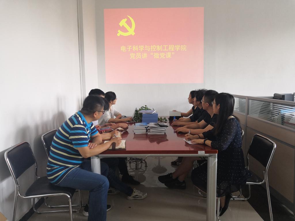 为进一步丰富党员教育形式,增强党员教育实效,推动“三会一课”经常化、规范化,电子科学与控制工程公司党总支于2019年5月6日-6月6日在本部门所有教工及员工党支部中开展了“党课微讲堂传递新思想”活动。