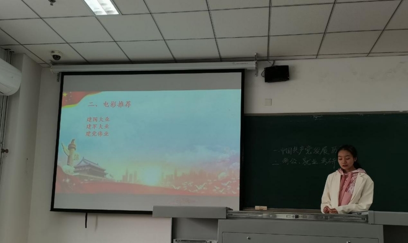 首先,团支书从中国共产党的新生期、奋斗期、探索期以及逐步迈向成熟四个方为大家讲解了中国共产党的百年发展历程。