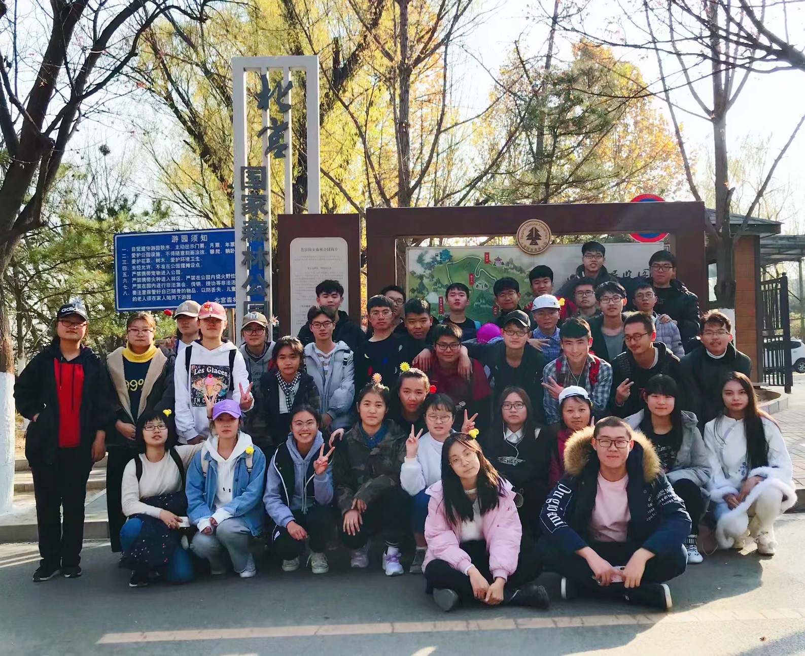 2018年11月11日7点,180531班全体同学们乘坐大巴在班长带领下到达北宫国家森林公园,并由班长介绍主要的活动。在此过程中,同学们各自组成小组爬山,并针对景点处的各种不文明现象进行宣传与指正:诸如劝诫游客不要在公园吸烟、不要破坏树木(摘果子)、野餐完不要乱扔垃圾、公共场所不要大声喧哗、行走过程中注意互相帮助尤其是对待弱势群体。之后,在狼坡顶上以介绍改革开放历史和分享时代成果的形式深刻学习了当代改革开放精神,并在激发同学们新的学习动力等方面提出了新的展望。全体同学精神饱满,积极踊跃,互相帮助,狼坡顶坡度较高,但这正是体现同学们毅力的关键。