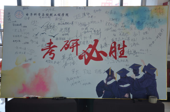 然后为他们发放考研必备文具袋,内含参加考试所必需的的文具。最后,学长学姐们纷纷在考研签名板上写下自己的目标以及祝福。(图四、五、六、七)