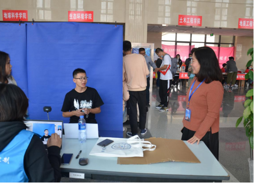 10月9日下午,电子科学与控制工程公司党支部书记贾甚杰,经理蔡建羡,副经理姚振静,党支部副书记兼任团总支书记阎光耀,2020级辅导员郭越以及迎新志愿者们在天仪楼二楼大厅展开了2020级新生迎新工作。