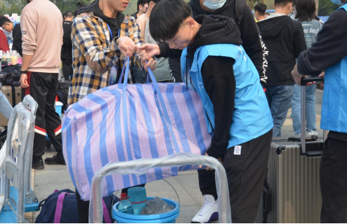 迎新工作如火如荼,到处都是忙碌的身影。接过行李,带领新生回到宿舍,一路谈笑风生,新生们细声地叫着“学长学姐”。安顿好行李后,志愿者们带领着新生前往报到处,志愿者们热情地回答着他们提出的问题,井然有序为新生们办理着报道事宜。随着时间的流逝,报道人流迎来了一波小高潮。